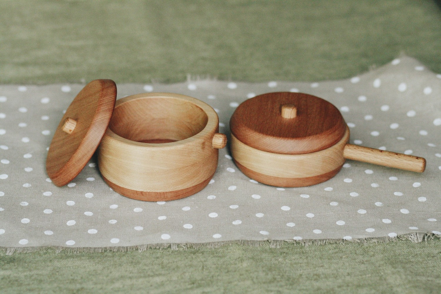 This heirloom-quality Pot is a must-have for kitchen play. It includes 2 pieces for pretend play: a pot with 1 lid. It is made of hardwoods: maple and beech, saturated with linseed oil and beeswax. Due to the natural uniqueness of wood we use, the shade of the product you ordered may differ from the photos on the website.