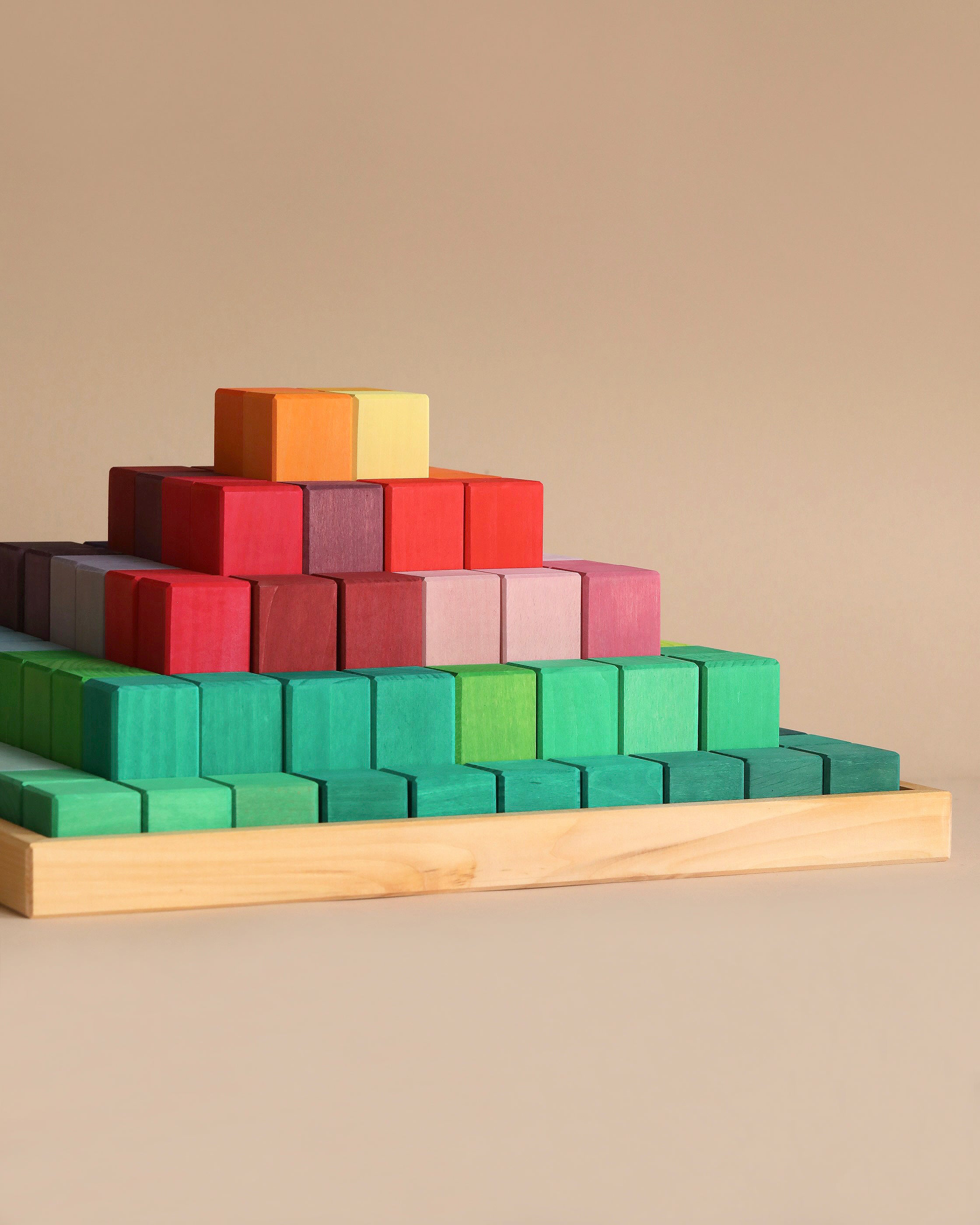 - 100 building blocks in wooden frame.
