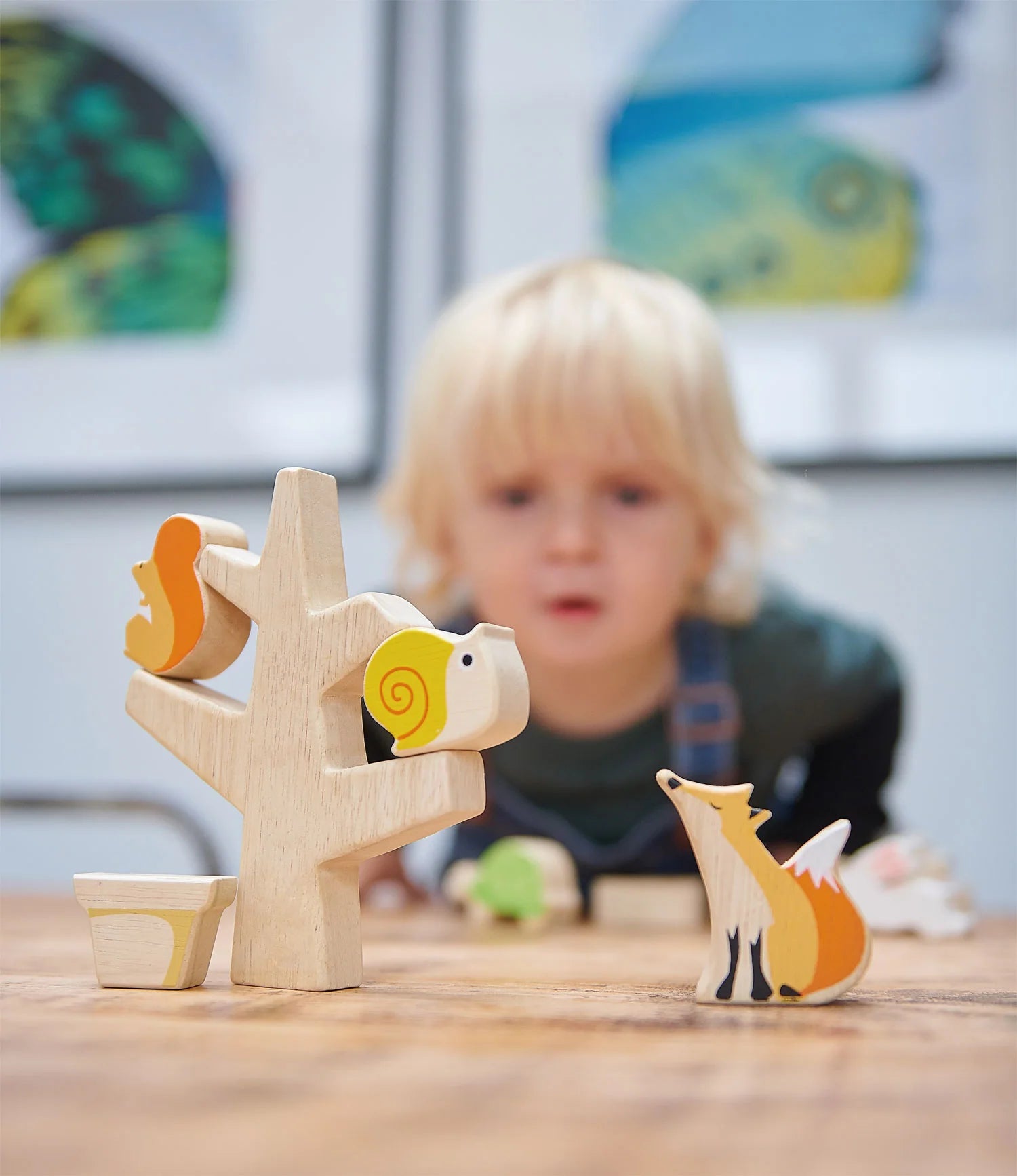 Hang out with all the garden friends and try to stack them all up on the tree without falling down! The Stacking Garden Friends is made from solid wood and painted with cute garden motifs, it also comes with a printed drawstring bag for easy storage. Encourage logical thinking and inspire imaginative play and fine motor skills.