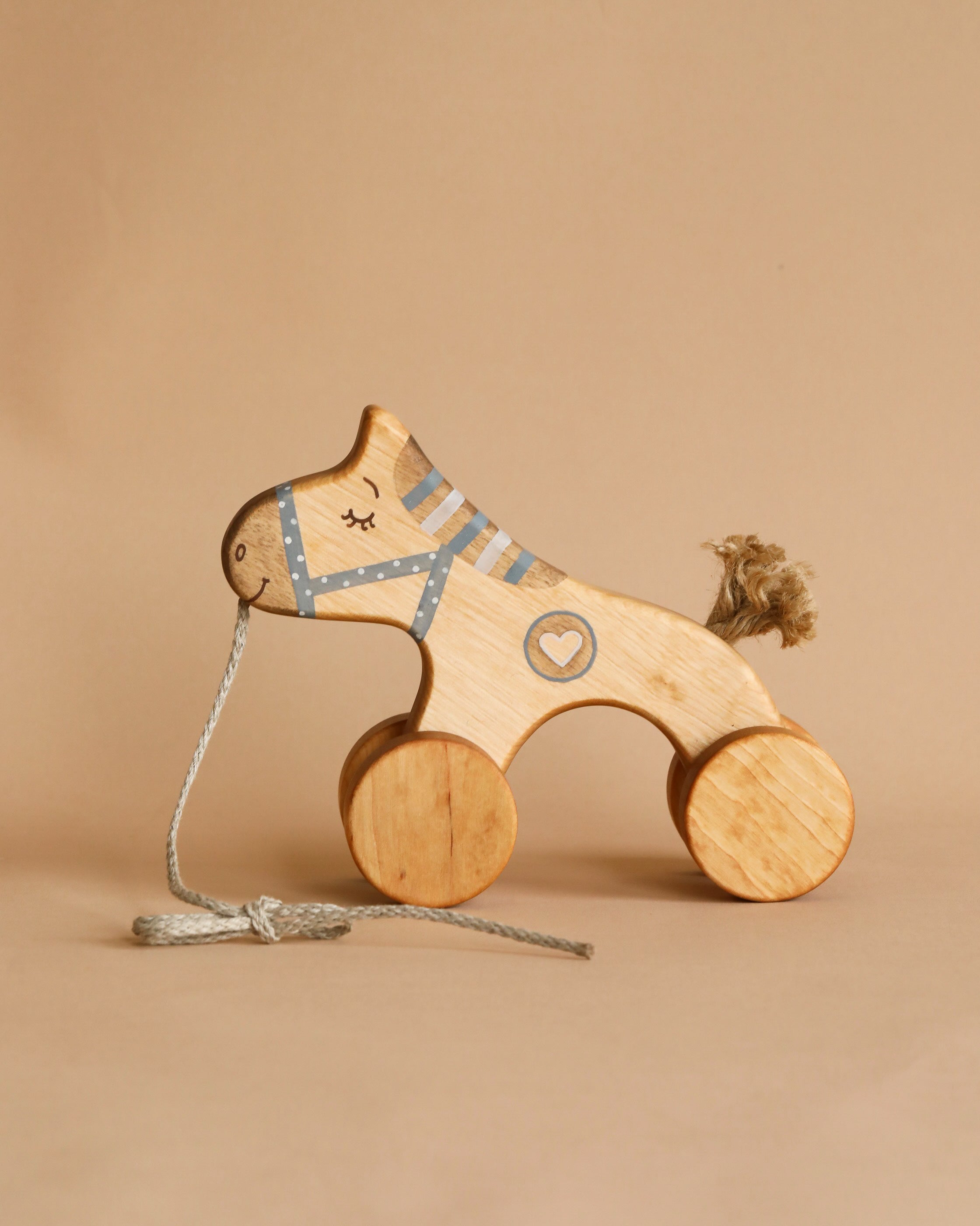 Handmade Wooden Horse Pull Toy | Blue