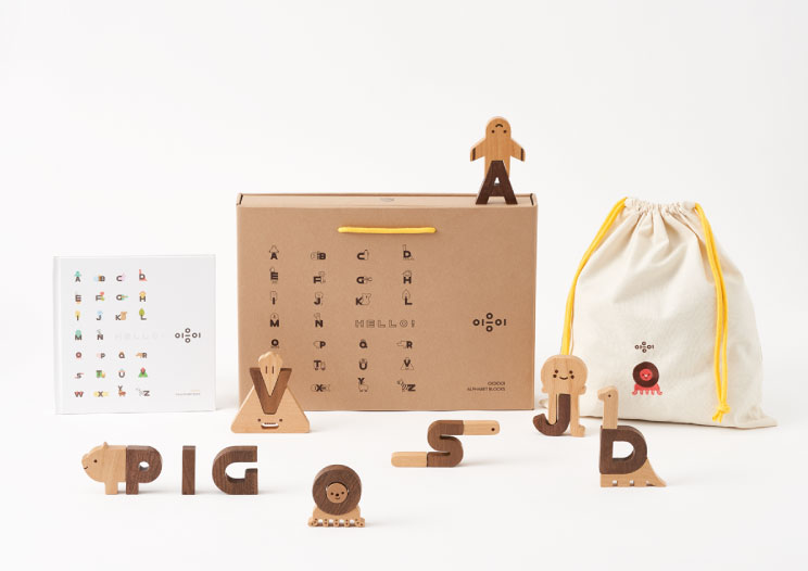 This unique wooden alphabet set consists of 60 solid wooden blocks made of beech and walnut. Each letter in this set includes a corresponding shape for little ones to find and match together. Each package also includes a matching alphabet book, draw string storage bag and a sturdy drawer box.